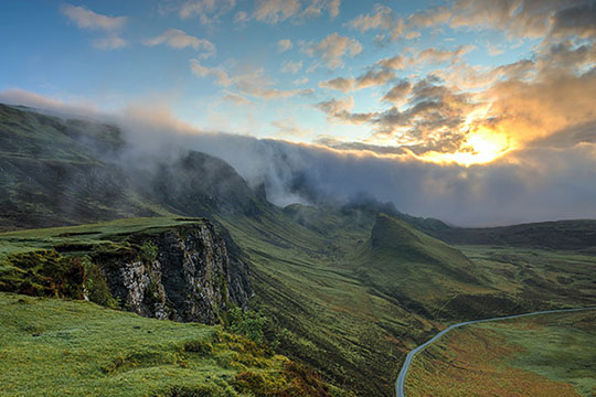 Правая сторона может содержать много контента, который будет прокручиваться вверх и вниз. Левая сторона фиксирована. Изображение параллакса меняется для разных страниц.